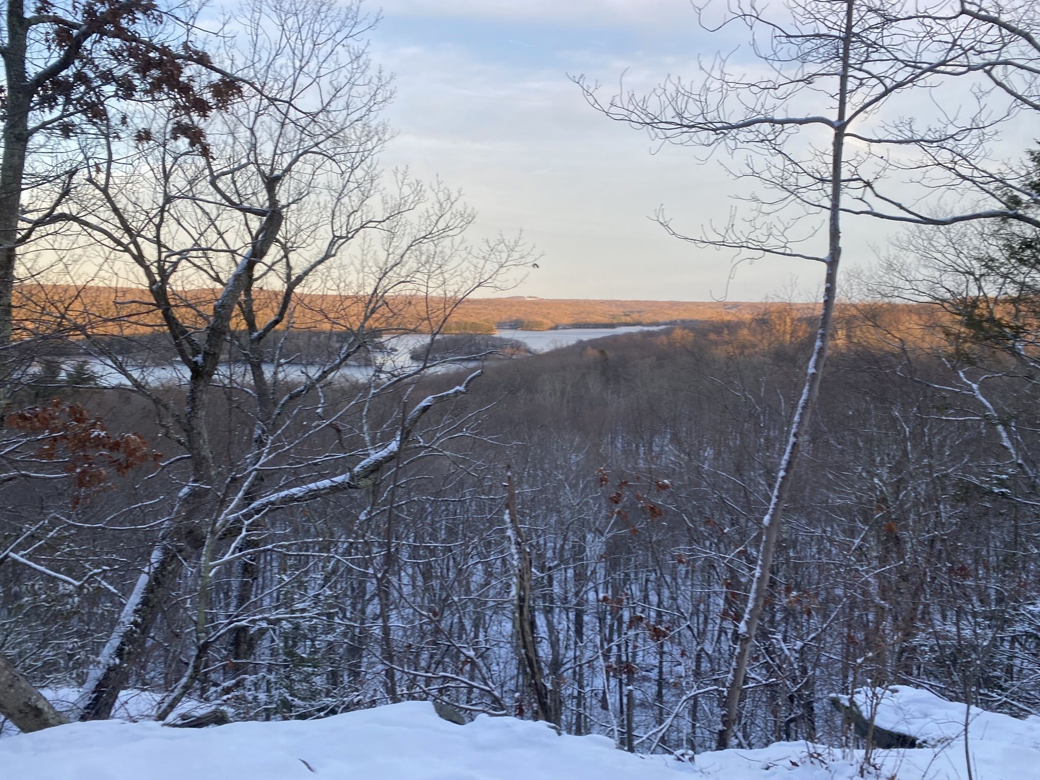 This is no manicured park. Acquired piece by piece between 1967 and 1985, Lake Mohegan Open Space feels wild in the best New England way—stone walls from colonial farms half-buried in drifts, wetlands edged in frost that crackle softly underfoot, and the lake itself reflecting a sky the color of old pewter. In winter the sprinkler park and playground sleep under white quilts, but the real playground becomes the land itself. Children shriek with delight as they sled the gentle hills behind the beach area. Dogs (on leash) bound ahead, tails wagging like metronomes. Birders stand motionless with binoculars, spotting wintering waterfowl that have the lake almost to themselves. The air tastes of pine and cold iron and something sweeter—maybe the memory of summer, maybe just the promise of the fire waiting later. Hours disappear. You can circle the lake twice, detour along the river, climb the small rise for views that stretch toward the Merritt and beyond, and still feel as though you’ve only scratched the surface of the quiet magic here. No crowds. No rush. Just the land in its truest winter dress, generous and unhurried, handing you back a piece of yourself you didn’t know was missing.